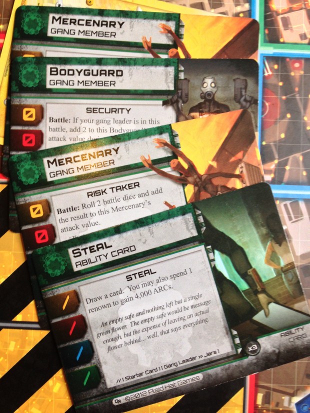 The core of CoR revolves around gang member cards and developments. I’ll go into more details on the developments later but the gang member cards are used for both combat and gaining bonuses or other effects through the game. They make the core of a player’s deck.