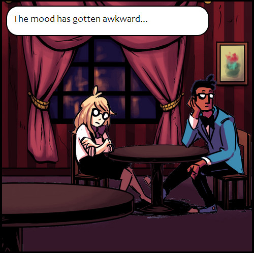 I guess I don’t love the idea that Back To The First Date hinges on. Within it, two characters each go back in time to steer their evening in a better direction, both of them changing their questions and answers so that they have a better time.