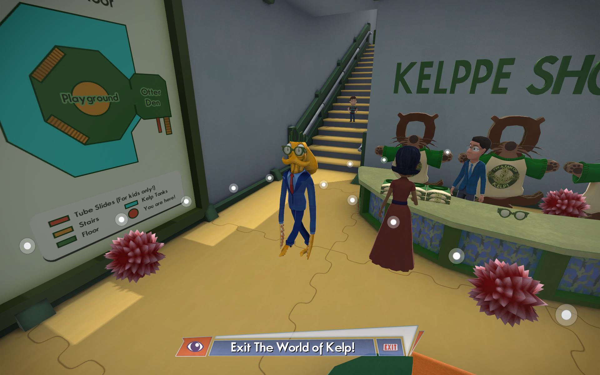 The whole game is a mix of hilarious ineptitude and rage-inducing frustration, only some of which is down to the controls. The camera repositions itself as you move around, but feels like it was designed for a character that can walk rather than one who clumsily wobbles about each room. You’ll find yourself hidden behind scenery in the middle of particularly finicky manoeuvres and probably fall over, undoing all your hard work.