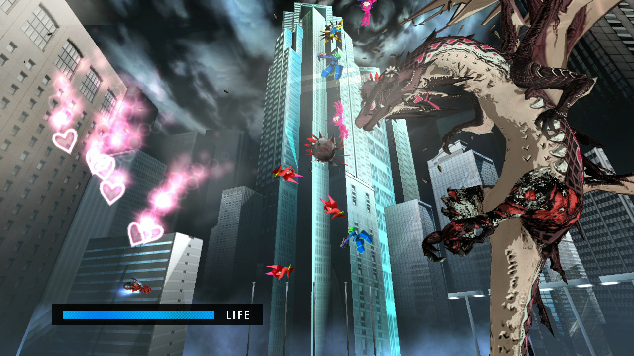 Generally the pursuing nastiness is explained through the anime cutscenes as, for example, assassins who’ve come to stop you. At one point, the anime story leaps forward in time by 50 years and Ranko is chased by a giant Pomeranian head, which later turns up as a giant Pomeranian head announcer hovering over a boxing ring. I don’t know why this happened. It may have all been a dream.