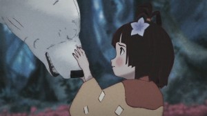 Katsuhiro Otomo hasn’t built the Short Peace collection around a theme. It’s simply a collection of four short movies, introduced by an opening cutscene in which a small girl finds a star that flies up her skirt and shines from her uterus.