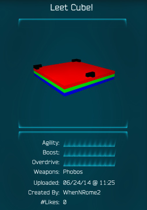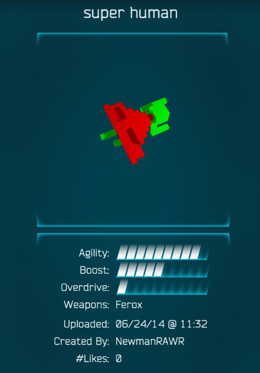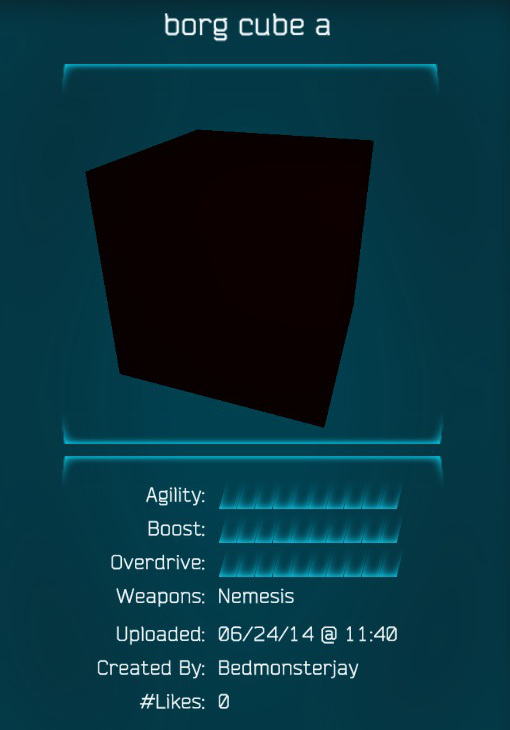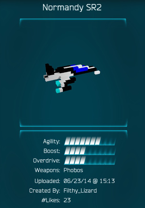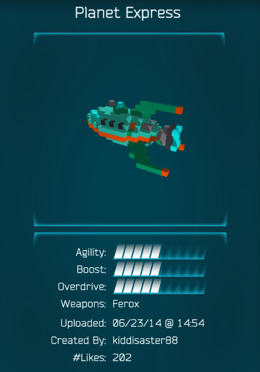Nick and I had a look through the ships available to download from other players. That’s Tiki Kiwi up at the top of this post, from our friend Tikipod. Here are some of the best that we found by browsing the public lists: