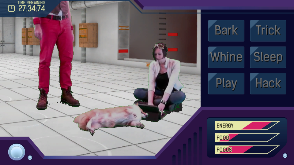 Corgi Simulator is entirely FMV. It’s the story of a corgi onboard a spaceship trying to hack a computer but two d-bags are getting in their way. This is pretty much analogous to the events of the TV show, with the tribulations of the main characters distracting from the more important check-in with the aforementioned dog.. This corgi acts at your behest, performing tricks to get the attention of the humans and being cute as all goddamn heck and you just want to fluff them up and tell them they’re good. The dog barks! It goes to sleep! It has a little doggy snack! When you eventually get around to hacking the computer the dog taps the screen with their doggy paw! Aaaaaaaaaa! Dog!
