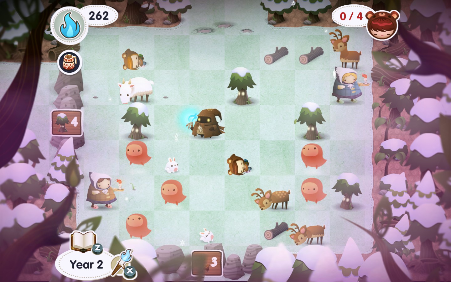 You’ve got to worry about two things in this crafting system. Items are limited, so you need to think about whether you’ll need what you’ve just destroyed in order to open up a door further into the level. You’ll also need to ensure that you don’t match fire spirits and white spirits, who will become an evil spirit that chomps at your lifebar and sends you closer to restarting the entire game over from the first year.