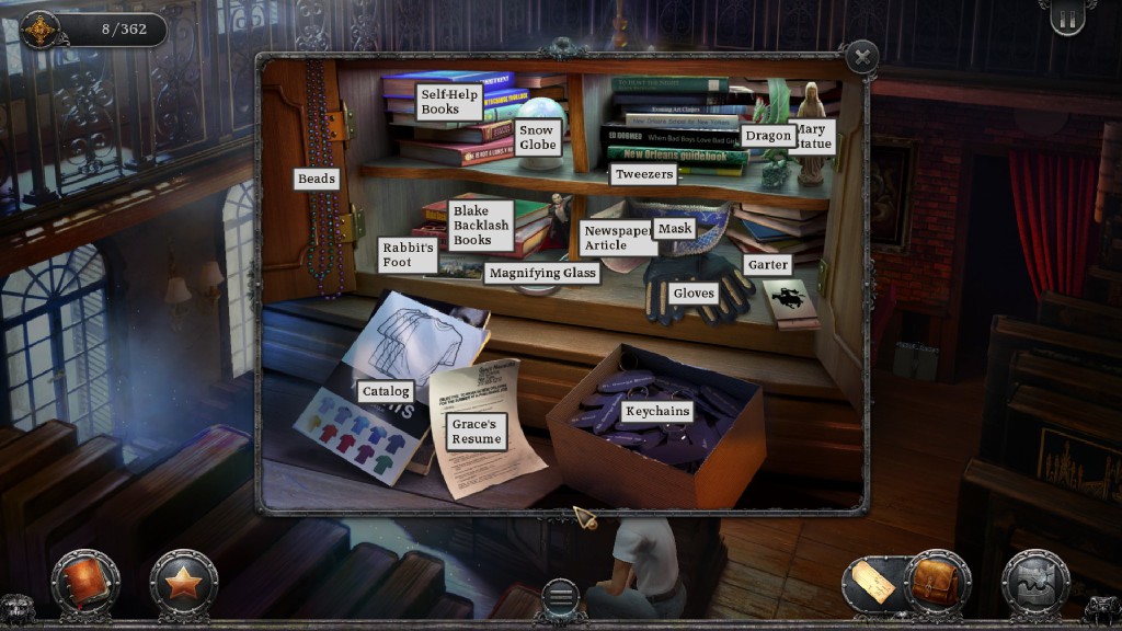 It’s only when the trail goes cold and the police close the case, that your unique, familial talents will make themselves known and you’ll take on an investigative role in to the really quite gruesome series of murders. You won’t be working alone however. Alongside Gabriel there’s his lovely assistant Grace who not only works on your spooky research but offers scathing condemnation of your love life. You’re also conveniently chummy with a New Orleans detective who wants his moment of fame in one of your books. Usefully, he’s willing to offer up some juicy evidence in return.