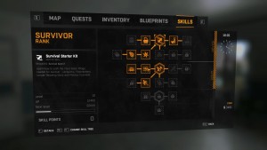 The third skill tree, survivor, is filled by completing missions, rescuing survivors, and other random events out in the world. Spending the points you earn in tiers, novice to expert, will unlock abilities such as increased inventory, the knowledge to craft more effective weapons, and some really cool passives such as the aforementioned zombie head-hopping.