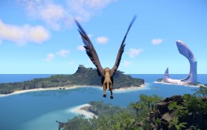 I like discovering things in game worlds. Wander sounded like the perfect game for me – a non-combat MMO with a focus on exploration and story. You start out as a huge Ent-like tree. Explore a little way and you’ll discover a stone that lets you turn into a humanoid form. Travel down to the ocean and you’ll find a shrine to become a reptilian creature and swim rapidly through the waters. Climb the right mountain and you can be a griffin.